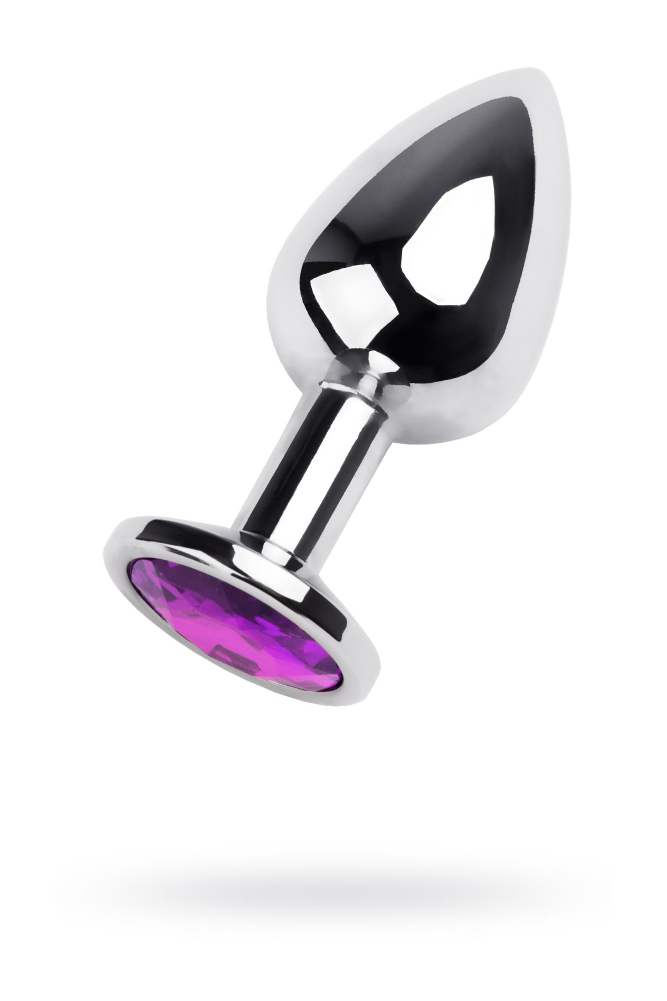 Анальная втулка Metal by TOYFA, металл, серебряная, с фиолетовым кристаллом, 8 см, d 3 см, 165 г (0T