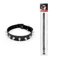 Оригинальный ошейник для любителей БДСМ-игр, декорированный металлическими украшениями. Имеет возможность регулировки размера с помощью ремешков.