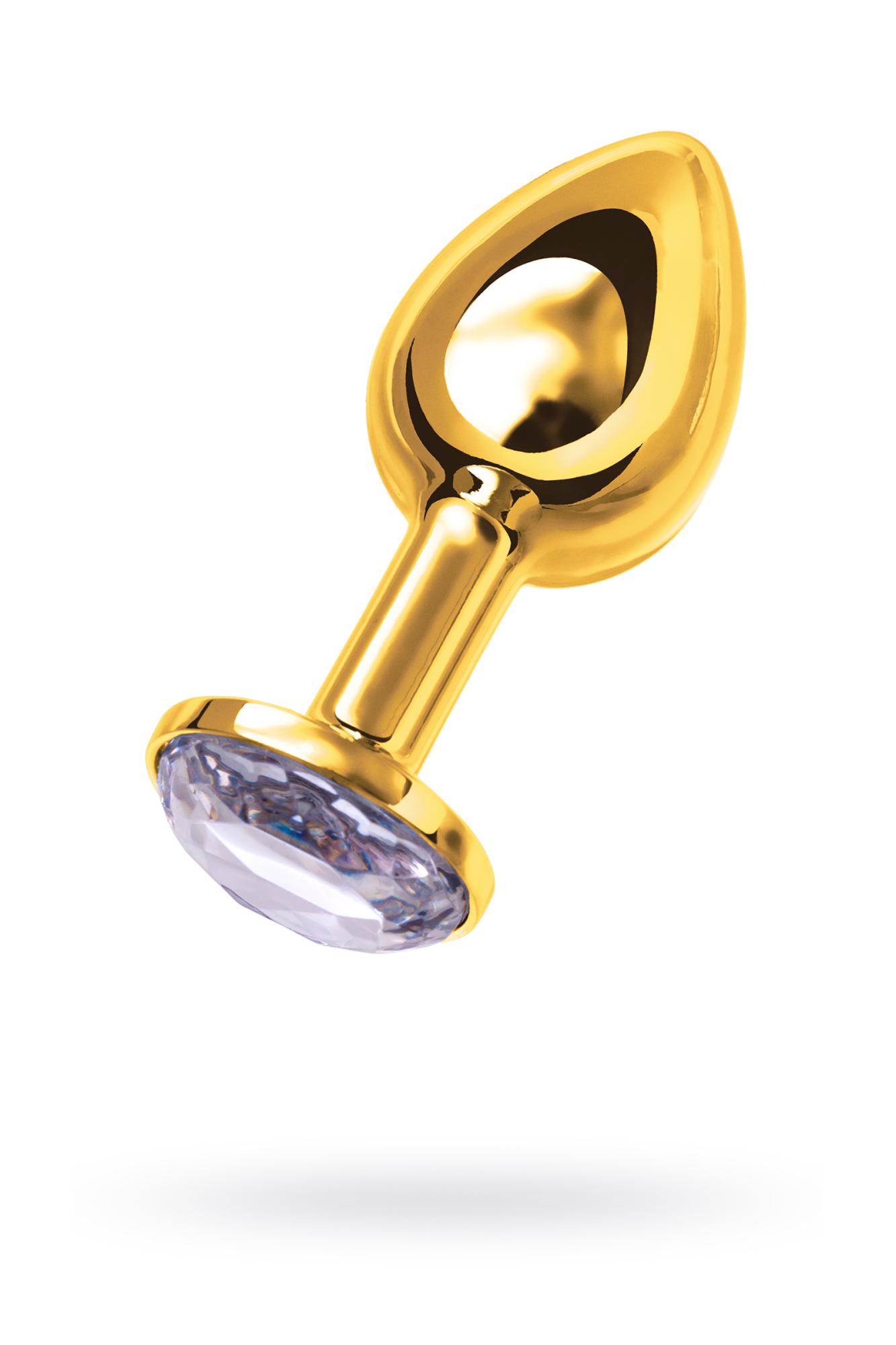 Анальная втулка Metal by TOYFA, металл, золотая, с белым кристаллом, 7,5 см, d 3 см, 145 г (0T-00002